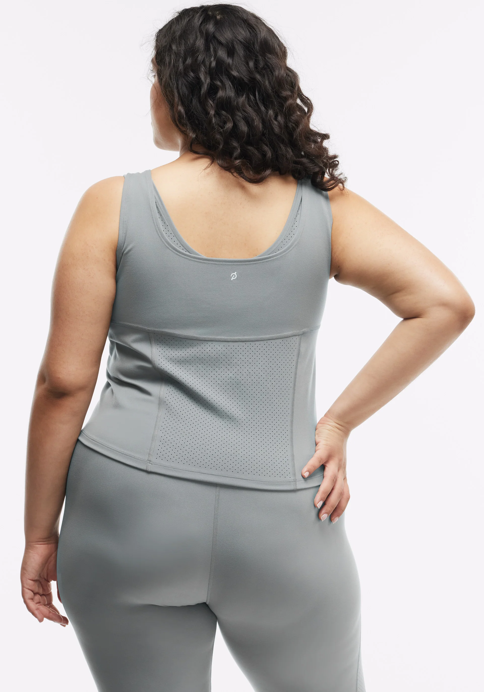 - Scoop neck tank with body contour seams at front and laser perforated ventilation at back